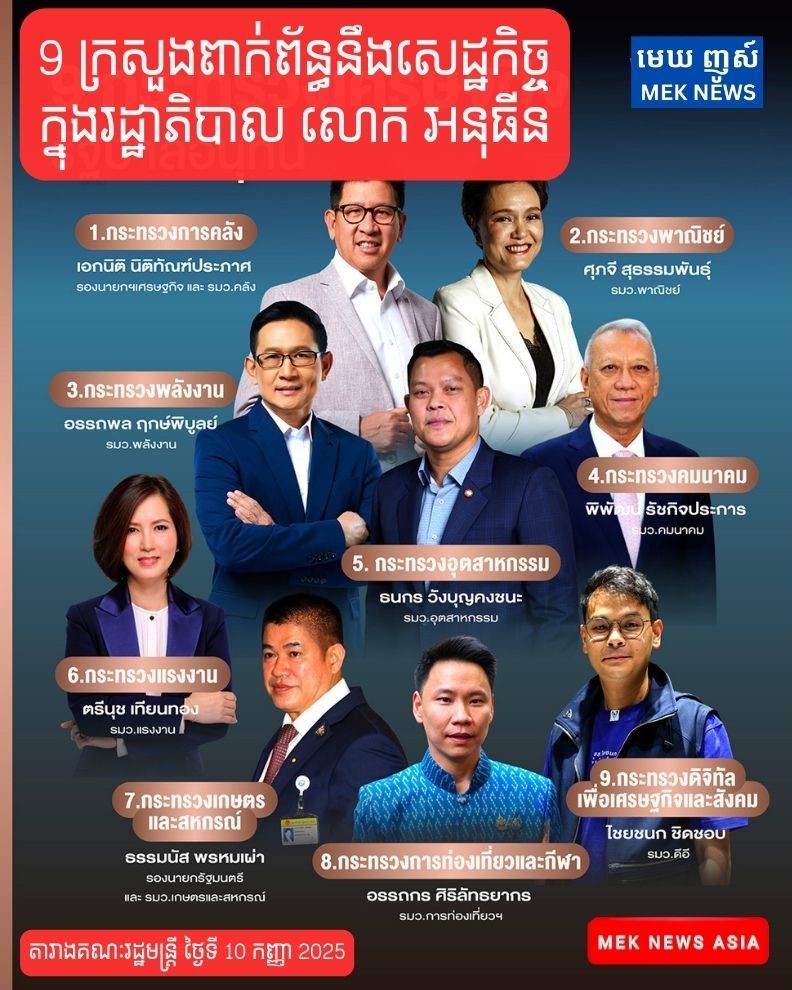 បន្ទាប់ពីនាយករដ្ឋមន្រ្តី អនុធីន ឆានវីរៈគុន Anutin Charnvirakul បានប្រកាសគណៈរដ្ឋមន្ត្រីថ្មី (រដ្ឋាភិបាលដំបូងរបស់ អនុធីន) ការយកចិត្តទុកដាក់ផ្តោតលើក្រុមសេដ្ឋកិច្ច (គណៈរដ្ឋមន្ត្រីសេដ្ឋកិច្ច) ។ អង្គភាពមេឃញូស៍បានសង្ខេបឈ្មោះក្រសួងនីមួយៗពាក់ព័ន្ធនឹងសេដ្ឋកិច្ច មានអ្នកណាខ្លះ ចំណេះដឹងនិងបទពិសោធន៍យ៉ាងណាខ្លះ?។