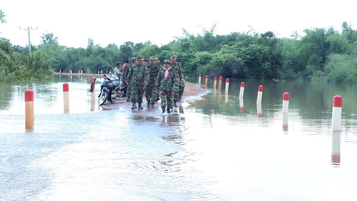ខេត្តកំពង់ធំ៖ នៅរសៀលថ្ងៃទី៣០ ខែកញ្ញា ឆ្នាំ២០២៥ ឧត្តមសេនីយ៍ទោ សោម ស៊ុន មេបញ្ជាការ តំបន់ប្រតិបត្តិការសឹករង អនុប្រធានក្រុមការងាររបស់រាជរដ្ឋាភិបាលចុះមូលដ្ឋានស្រុក និងជាប្រធានក្រុមការងាររបស់រាជរដ្ឋាភិបាលចុះមូលដ្ឋានឃុំ បានដឹកនាំសហការី ទៅពិនិត្យមើលស្ថានភាពជំនន់ទឹកភ្លៀង ដែលកំពុងហក់ឡើង បណ្ដាលឱ្យរងផលប៉ះពាល់ដំណាំស្រូវ និងលិចផ្លូវលំក្រាលគ្រួសក្រហម នៅឃុំដងកាំបិត ស្រុកសណ្ដាន់ ខេត្តកំពង់ធំ ។
